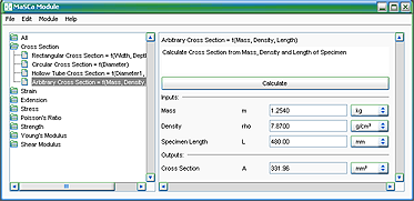 MaSCa ist ein Modul für den admaDIC Calculator. Mit diesem Modul können typische Berechnungen für die Materialprüfung durchgeführt werden wie beispielsweise: Bestimmung des E-Moduls aus je zwei Spannungs- und Dehnungswerten, Ermittlung der wahren Dehnung aus Meßlänge und Anfangslänge, Berechnung der Poissonzahl aus Schubmodul und E-Modul.